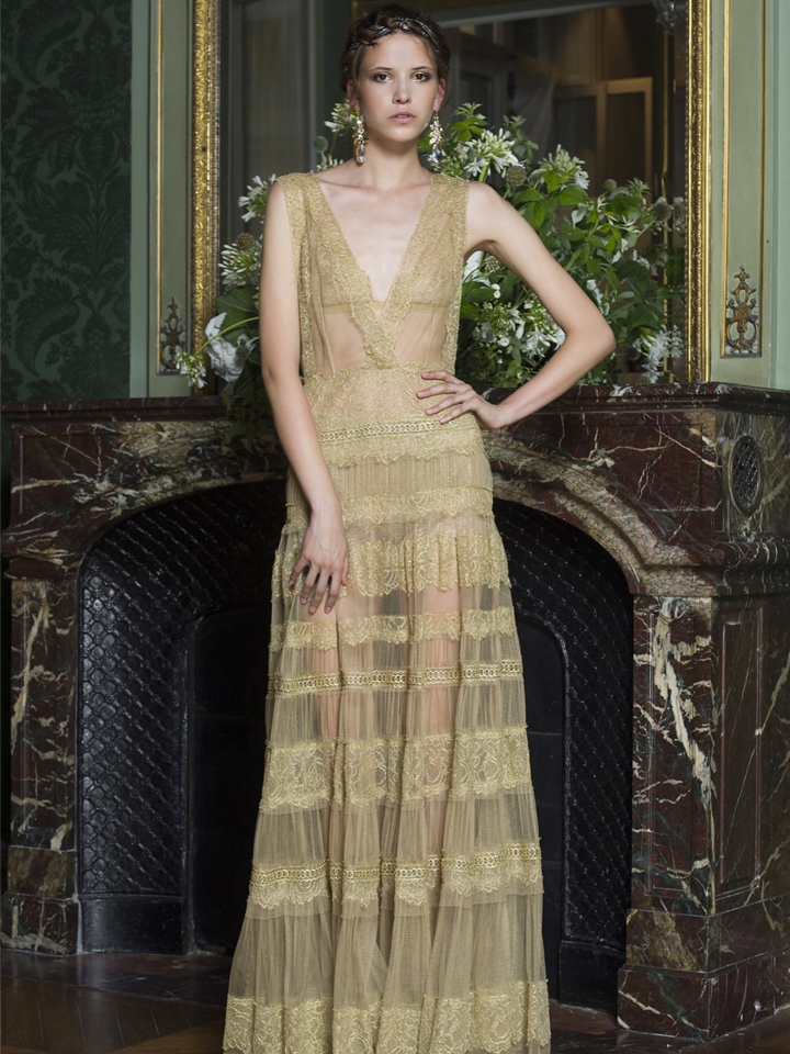 Thương hiệu thời trang Italy Alberta Ferretti vừa cho ra mắt dòng thời trang giới hạn gồm những thiết kế demi-couture lộng lẫy. Mục đích của sự ra đời này là để phục vụ nhu cầu mặc váy dạ hội được thiết kế riêng biệt từ các khách hàng của Alberta Ferretti. BST toát lên vẻ đẹp lãng mạn của phong cách Bohemian. Chất hoàng gia cao quý được thể hiện qua gam màu xanh ngọc lục bảo, đỏ burgundy và vàng với chi tiết hoa văn baroque sang trọng. Không chỉ gợi ý những lựa chọn cho dạ tiệc mà BST còn có những thiết kế váy cưới rất cầu kì và duyên dáng.