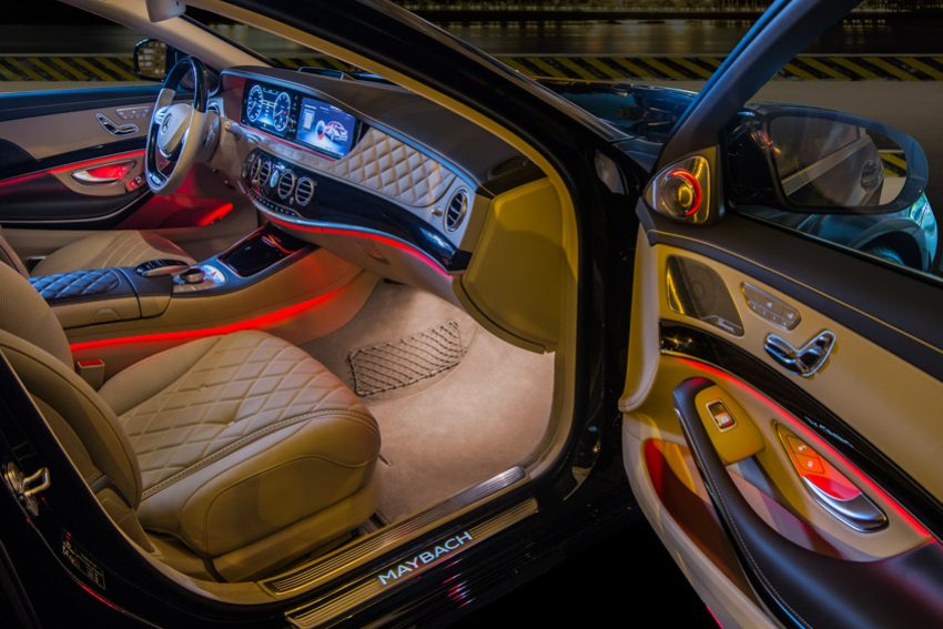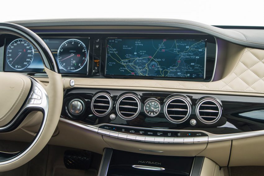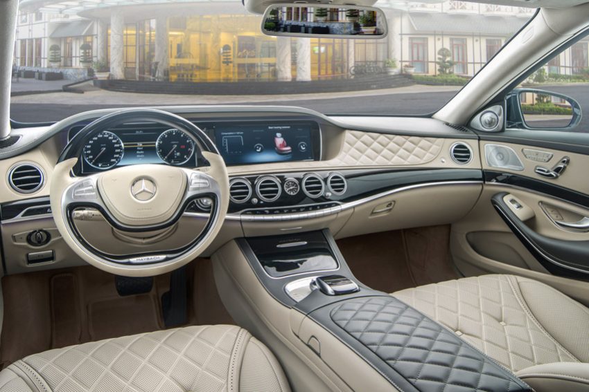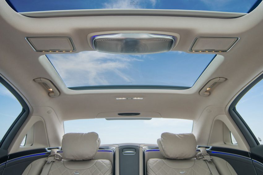 Khoang nội thất của cả hai phiên bản đều tràn ngập chất liệu gỗ quý đi cùng da Nappa Exclusive hoặc Designo Exclusive Semi-aniline thượng hạng. Bảng điều khiển trung tâm được đính đồng hồ cơ học phong cách cổ điển, chế tác bởi hãng đồng hồ danh tiếng IWC. Hệ thống âm thanh vòm Burmester® high-end 3D 24 loa, tổng công suất 1.540 watt sẽ tiếp tục xuất hiện trên cả hai phiên bản. Cửa sổ trời siêu rộng với kính đổi màu MAGIC SKY CONTROL cũng là trang bị tiêu chuẩn trên hai phiên bản Mercedes-Maybach mới.
