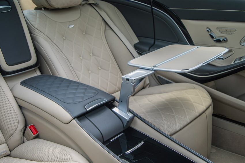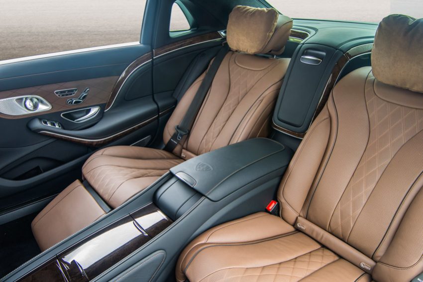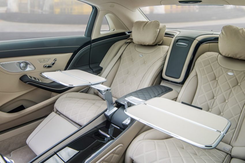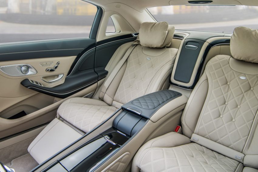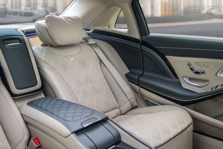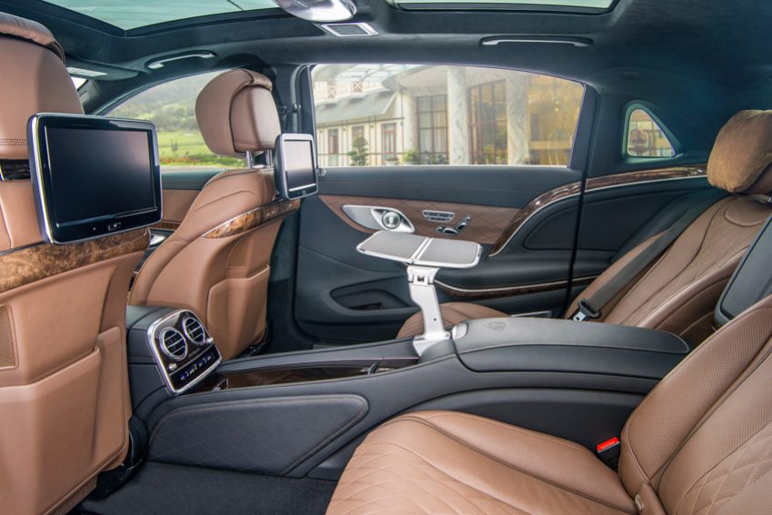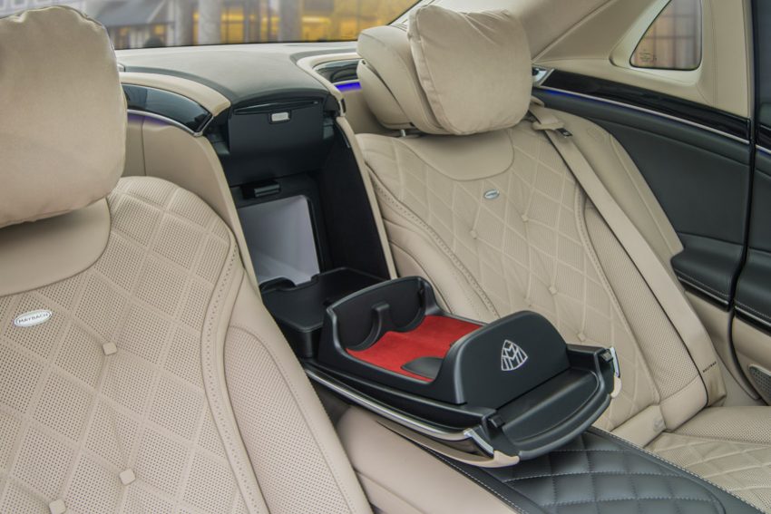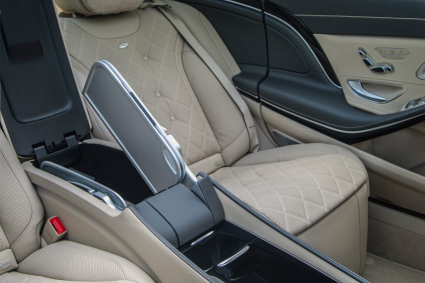 Khoang hành khách phía sau trên cả ba phiên bản là hoàn toàn giống nhau, rộng rãi với 2 ghế thương gia, có thể ngả tối đa về phía sau lên đến 43,5°, tích hợp đệm đỡ bắp chân, đỡ chân điều chỉnh điện cùng chức năng massage 6 chế độ, bao gồm 2 chế độ massage chườm đá nóng. Xe còn được trang bị bộ bàn làm việc với cơ cấu gập thông minh, tiện lợi. Hành khách cũng có thể nâng ly cho những khoảnh khắc đáng nhớ với 2 ly champagne bằng bạc được chế tác thủ công bởi Robbe & Berking cùng những giọt rượu quý lấy từ hộc lạnh phía sau – cũng là một trang bị tiêu chuẩn trên tất cả phiên bản.