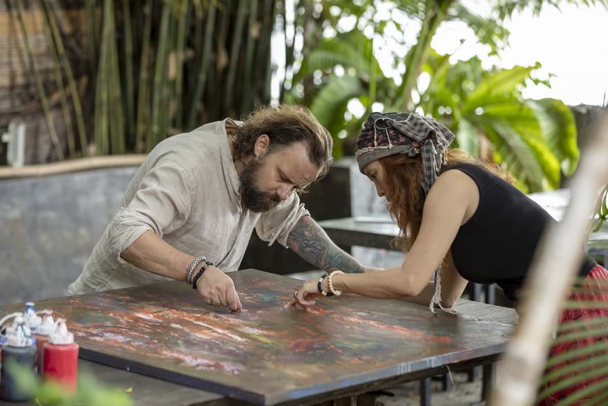 Nghệ nhân nấu bia người Đức Benjamin Schiller và vợ Phùng Thanh Hà cùng theo đuổi việc vẽ tranh và khởi đầu bằng triển lãm chung tại Schiller River Club (28 Đường số 10, phường Hiệp Bình, Thủ Đức, TP.HCM) bắt đầu từ ngày 27.9.