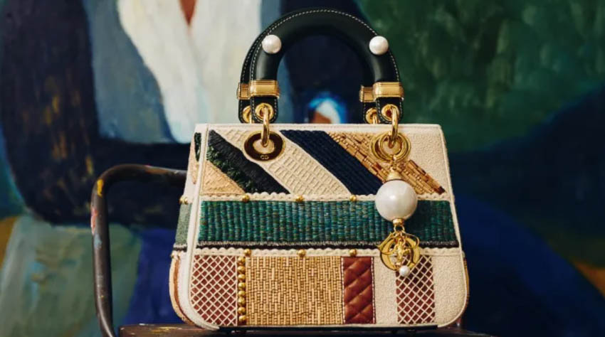Ở đó, Dior không chỉ giữ gìn di sản, mà đặt di sản vào chuyển động. Khi Jessica Cannon đính lên túi những hạt ngọc trai tượng trưng cho thiên thể, hay Patrick Eugène dùng cỏ rơm, gỗ và hạt cườm kể về quê hương Haiti, chiếc túi bỗng trở thành một tấm toan – nơi nghệ thuật vượt khỏi khung vải, đi vào đời sống. Mỗi đường chỉ như vệt cọ, mỗi bề mặt như một đoạn ký ức.