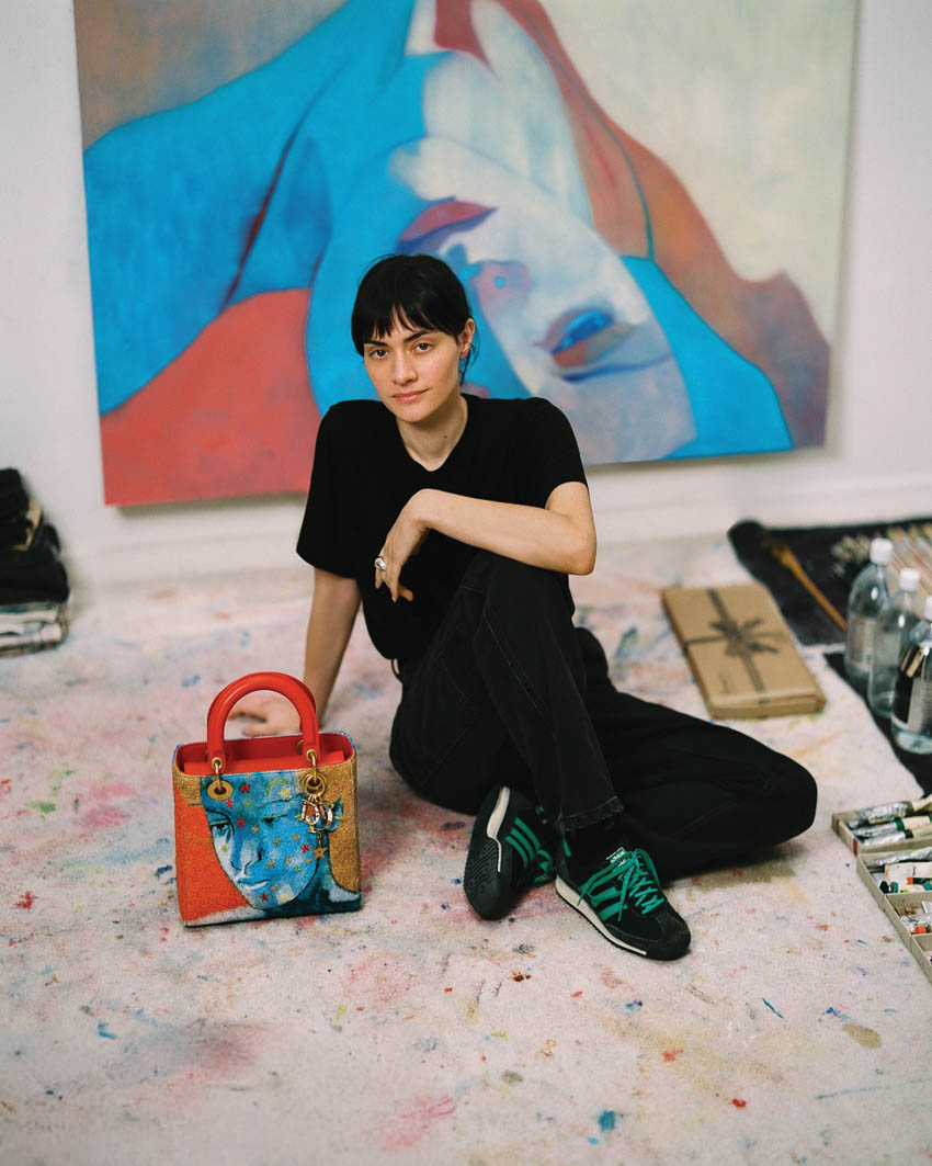Nữ nghệ sĩ Ines Longevial trong không gian sáng tạo của mình cùng chiếc Lady Dior. ©Marion Berrin
