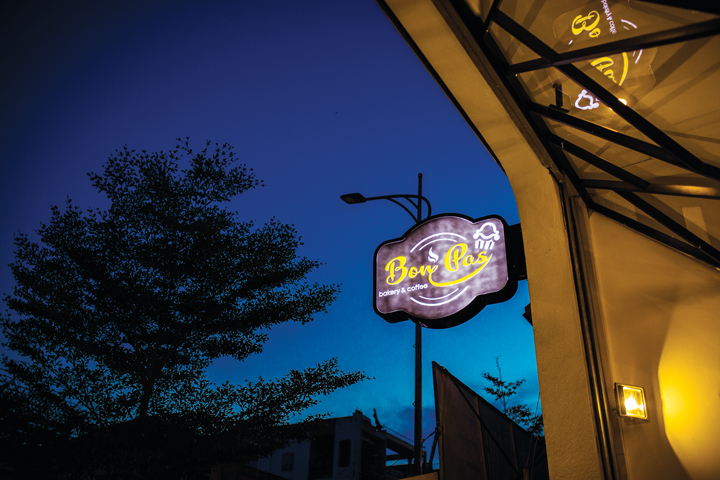 Có mặt tiền rộng nhìn ra đoạn đường tấp nập, vị trí này khá thuận lợi cho việc kinh doanh nhưng cũng đòi hỏi nhiều thách thức trong việc kết hợp giữa hai không gian trong và ngoài để vừa tạo được sự thu hút của công trình giữa không gian xung quanh, vừa đảm bảo tính thẩm mỹ trong thiết kế, đồng thời còn mang đúng không khí của BonPas. Lời giải cho bài toán đó được các nhà thiết kế giải quyết thành công bằng một “tuyệt chiêu”: Dựng mặt tiền hình nhánh cây bằng cách kết hợp giữa sắt và kính, sử dụng những mảng vạt xéo phá cách, tuy đơn giản nhưng chưa bao giờ cũ. Kết quả là mọi người có thể mục kích rõ không gian quán ngay từ khi còn ở bên ngoài.