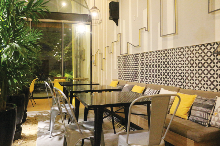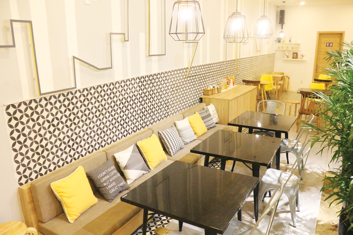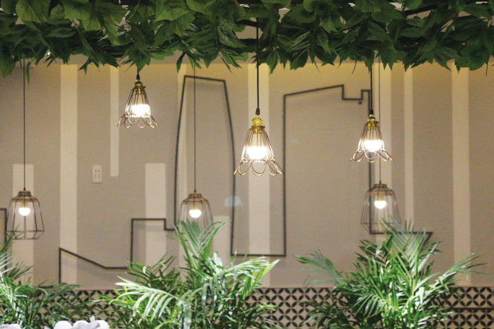 Chiếm trọn các mảng tường hai bên là một Đà Nẵng nhộn nhịp thấp thoáng đường nét những công trình biểu tượng của thành phố này qua chi tiết trang trí. Sự nhắc lại hình ảnh nhánh cây cũng sẽ làm cho sự trải nghiệm thêm sinh động, mộc mạc nhưng vẫn có chút khác lạ. Nét truyền thống cũng được lưu giữ qua các họa tiết trên những khuôn gạch bông, trở thành một nét Việt trong không khí lai Âu của không gian.