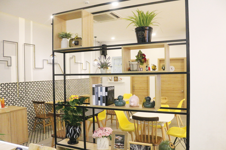 Cách giải quyết này cũng là ý tưởng tạo ra một hòn đảo nhiệt đới giữa không gian bên trong của quán. Quầy pha chế nằm ở vị trí trung tâm. Cây xanh kết hợp cùng ánh sáng giúp cho nơi đây trở thành điểm nhấn liên kết giữa hai khu vực bánh và cà phê, vừa tạo được sự sinh động, vừa đảm bảo yêu cầu của chủ đầu tư là hình thành một phong cách thưởng thức sản phẩm “rất Tây”.