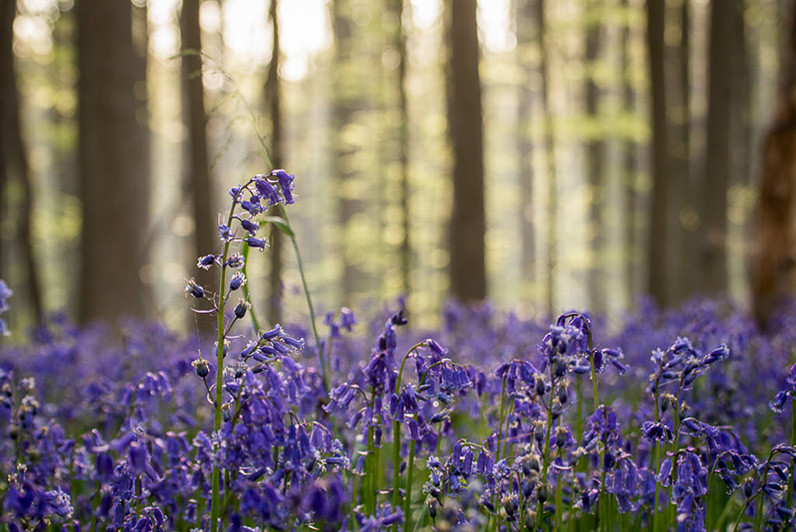 Lý do cánh rừng mang một vẻ huyền diệu là nhờ tấm thảm dày đặc hoa campanula, thuộc họ hoa chuông, có màu tím nhạt, tím hồng và tím xanh. Campanula nở vào cuối mùa xuân và đầu hè.
