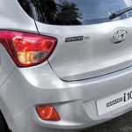Cũng như các mẫu xe khác của Hyundai trong thời gian qua, Hyundai Grand i10 được thiết kế với triết lý ngôn ngữ “điêu khắc dòng chảy” (hay còn được gọi là “điêu khắc lỏng”) mang đến vẻ ngoài ấn tượng và trẻ trung. Khi phát triển bản phác thảo đầu tiên, các nhà thiết kế của Hyundai đã lấy cảm hứng từ sự phối hợp giữa các dòng chảy trong tự nhiên với các góc cạnh và kết cấu mạnh mẽ nhằm tạo ra cảm giác chuyển động không ngừng cho chiếc xe. Đây là ngôn ngữ thiết kế nhất quán, gắn kết và xuyên suốt trên toàn bộ các model của Hyundai. Nổi bật nhất chính là cụm lưới tản nhiệt cỡ lớn, cản trước thiết kế thể thao và đèn xi-nhan LED trên gương chiếu hậu. Cản sau cũng được cách tân thể thao hơn, đi cùng với cụm cánh hướng gió trên nóc xe.