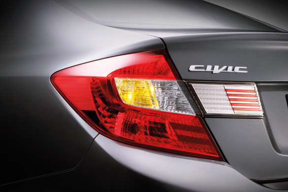 Civic 2012 dựa trên thiết kế mono-form và có tính khí động học cao hơn mang lại kiểu dáng đậm chất thể thao. Một số điểm nhấn về ngoại thất có thể kể tới như: Trụ A thiết kế mỏng hơn: giúp tối đa hóa không gian cabin, mang lại kiểu dáng hiện đại cho Civic và tạo ra kiểu dáng khí động học giúp cho chiếc xe dễ dàng lướt đi trên mọi chặng đường. Gương chiếu hậu được thiết kế hoàn toàn mới, thiết kế gầm phẳng mới góp phần làm giảm tiếng ồn của gió khi xe chạy. Vật liệu cách âm ở nắp xe, bảng điều khiển… giảm thiểu tiếng ồn trong cabin trong khi trọng lượng xe cũng giảm theo. Bóng halogen phản chiếu đa chiều với thiết kế năng động và chức năng tự động tắt mở còn giúp người lái có thể tự tin hơn khi điều khiển xe vào buổi tối.