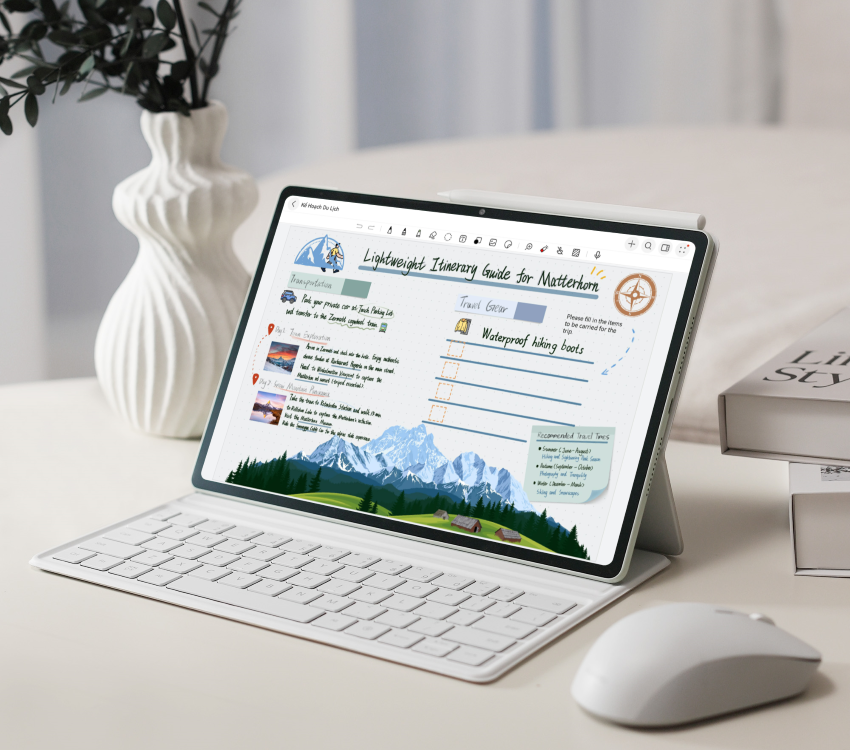 MatePad 12 X được tối ưu cho công việc với hệ sinh thái phần mềm phong phú, nổi bật là WPS Office PC 3.0 – mang giao diện và cách vận hành tương tự máy tính để bàn, cho phép xử lý văn bản, bảng tính và trình chiếu ngay trên máy tính bảng. Các ứng dụng như HUAWEI Notes và GoPaint cũng được tinh chỉnh nhằm phục vụ tốt hơn cho ghi chú và sáng tạo nội dung.