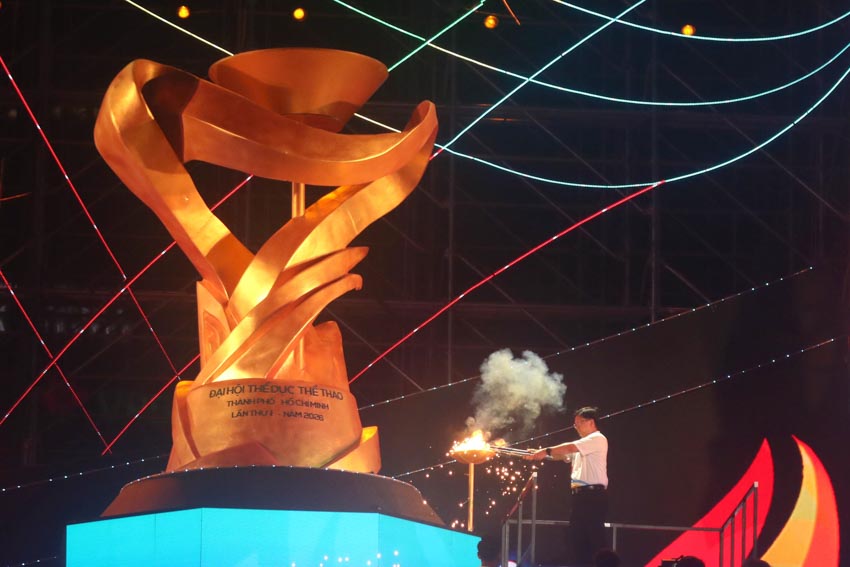 Sau phần diễu hành là nghi thức chào cờ và rước đuốc Đại hội. Ông Nguyễn Mạnh Cường – Phó Chủ tịch UBND TPHCM – đã thực hiện nghi thức châm đài lửa, chính thức thắp sáng tinh thần thể thao của kỳ đại hội.