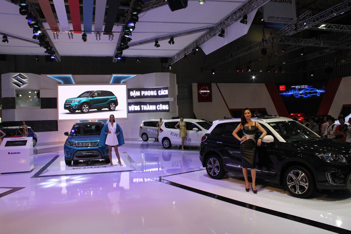 Gian hàng Suzuki mở màn cho phần Press Tour vào buổi sáng với màn trình diễn sôi động của các vũ công hiện đại, cả 3 mẫu Suzuki Vitara 2015 được trùm kín tạo nên một background nổi bật cho sân khấu. Thương hiệu xe Nhật bản cũng tăng tính hồi hộp dành cho sự trình làng mẫu xe mới của mình thông qua sự xuất hiện của ảo thuật gia đang hot hiện nay – Petey Nguyễn.