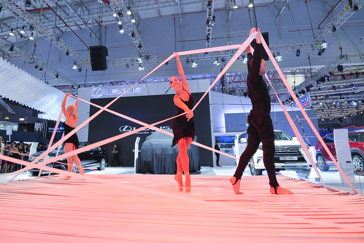 Không kém cạnh cho màn trình diễn ngay sau đó, sân khấu của Lexus vẫn với phong thái sang trọng trong các tiết mục nghệ thuật như đã từng thấy, màn chào sân của Lexus lại tiếp tục khẳng định đẳng cấp sang trọng thông qua màn múa đương đại của các vũ công phương tây. Trái tim sân khấu Lexus dành cho sự chiêm ngưỡng của khán giả là chiếc Lexus LX 570.