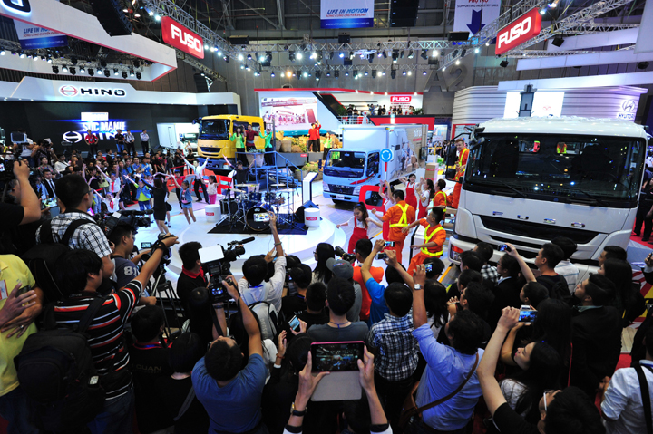 Vẫn giữ tinh thần mạnh mẽ của phân khúc xe thương mại, FUSO mở đầu màn trình diễn bằng tiết mục trống đầy cuốn hút do một tay trống nữ thể hiện. Theo sau là các vũ công nhấn mạnh tinh thần “Cùng doanh nghiệp trên mọi nẻo đường” lần lượt đưa khán giả đến với những mẫu xe mới được giới thiệu tại triển lãm lần này. Bài ca lao động hăng say được mô phỏng theo từng loại hình doanh nghiệp: hiện đại hóa nông thôn, phục vụ công trình, cầu cảng, vận chuyển hàng hóa trong thành phố và ngoại ô, đưa rước khác trải dài theo đường cong chữ “S” của nước Việt Nam. Phần biểu diễn được kết lại bằng màn nhảy flash mob khiến khách hàng vô cùng thích thú trước sự biến hóa năng động của gian hàng FUSO.