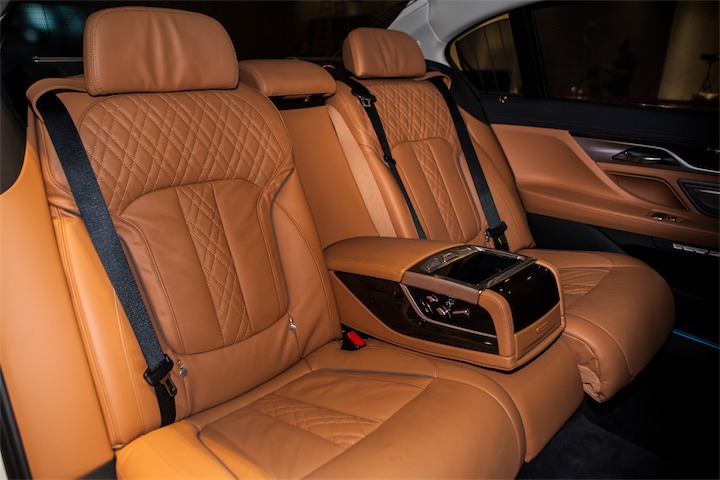 Tại Việt Nam, trang bị tiêu chuẩn trên BMW 740Li bao gồm cửa hít tự động, ghế ngồi bọc da Dakota kèm chức năng thông hơi và massage cho cả ghế trước và sau. Các chi tiết nội thất được trang trí bằng ốp gỗ quý Fineline và chiếc vô-lăng gỗ thiết kế mới, rèm che nắng cho hàng ghế sau và dàn âm thanh thượng hạng Harman Kardon.