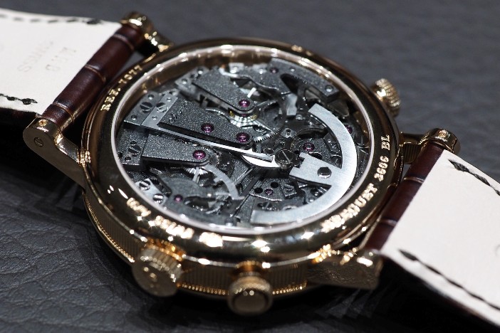Hãng đồng hồ Breguet được biết đến như một nhà chế tác đồng hồ đẳng cấp “haute de gamme” vừa giới thiệu mẫu đồng hồ Tradition Chronograph Independent 7077 là sự pha trộn hài hòa giữa những giá trị cổ điển và hiện đại. Chiếc đồng hồ có đường kính 44mm làm bằng vàng trắng và hồng này có mặt thiết kế vô cùng ấn tượng là hệ thống lắp ghép các chi tiết tinh xảo. Mỗi hệ thống ròng rọc đều có bánh cân bằng, lò xo và cơ chế hồi riêng. Đáng chú ý là bộ điều chỉnh chạy ở tần số 5Hz và bộ đếm giờ chạy ở tần số 3Hz. Hệ thống xem giờ bao gồm đĩa số chính có các kí tự La Mã, bên phải hiện thị số giờ lưu trữ năng lượng (50 giờ) và bên trái hiện thị bộ đếm từ 0-20 phút. Ngoài ra, bộ máy 580DR gồm 62 viên đá cũng do chính Breguet tự phát triển và lắp ráp.