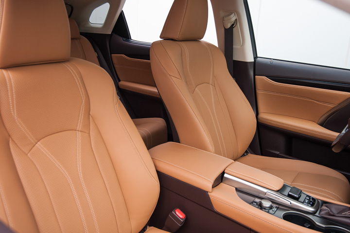 Ghế lái và ghế trước được thiết kế thấp hơn với vành đỡ hai bên nhẹ nhàng ôm sát cơ thể. Ngoài ra cabin còn có hệ thống đèn trần điều khiển cảm ứng và hệ thống đèn hắt với tông màu dịu nhẹ, hệ thống âm thanh vòm cao cấp 15 loa Mark Levinson trên phiên bản RX350. Với không gian nội thất tối ưu hóa dành cho 5 hành khách, khoang ghế sau rộng rãi và thoải mái trên RX mới có thể sánh ngang với mẫu sedan sang trọng bậc nhất Lexus LS. Ghế sau có thể điều chỉnh điện để ngả hoặc gập phẳng.