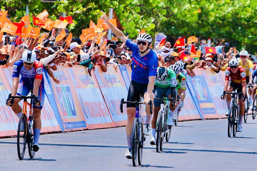 Trong cuộc đua xe đạp “Non sông liền một dải” tranh Cúp HTV – Tôn Đông Á 2026, chặng thứ 14 từ Quy Nhơn đi Tuy Hòa dài 94km diễn ra sáng nay (18/4), tay đua Marchuk Dzianis (ĐN) đã tiếp tục khẳng định sức mạnh tốc độ khi lần thứ 5 cán đích đầu tiên. Dù có nhiều nỗ lực tấn công, các danh hiệu cao quý nhất vẫn không hề thay đổi chủ.