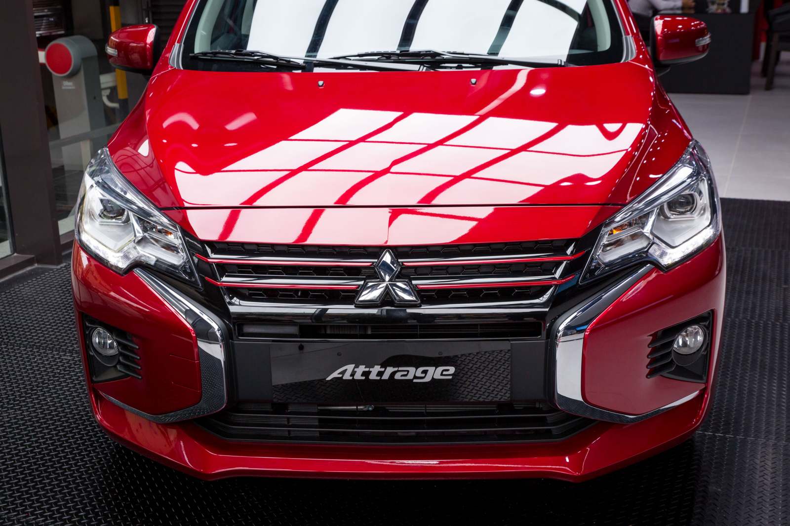 Là mẫu xe kế tiếp thừa hưởng ngôn ngữ thiết kế “Dynamic Shield” độc đáo của Mitsubishi, với diện mạo hoàn toàn mới, Attrage 2020 sở hữu kiểu dáng mạnh mẽ, hiện đại, năng động. Phần đầu xe đặc trưng với 2 thanh trang trí mạ crôm hình chữ X. Lưới tản nhiệt với đường viền màu đỏ giúp tăng nét trẻ trung và hiện đại cho xe.