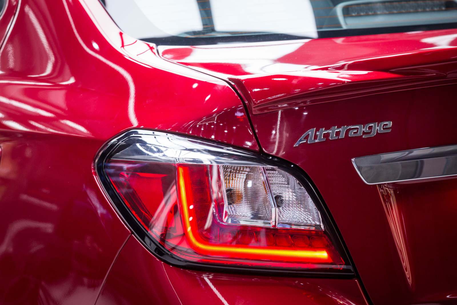 Khoang để hành lý của Attrage có dung tích lên đến 450 lít có thể chứa hành lý lớn cho những chuyến đi chơi xa. Ngoài ra, Attrage mới được trang bị nút bấm mở cốp đặt bên ngoài thay cho kiểu tích hợp vào tay nắm cửa, giúp dễ dàng mở cốp khi đang mang vác nhiều đồ đạc cồng kềnh.