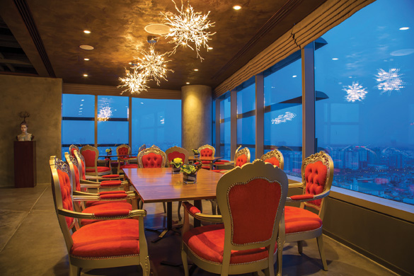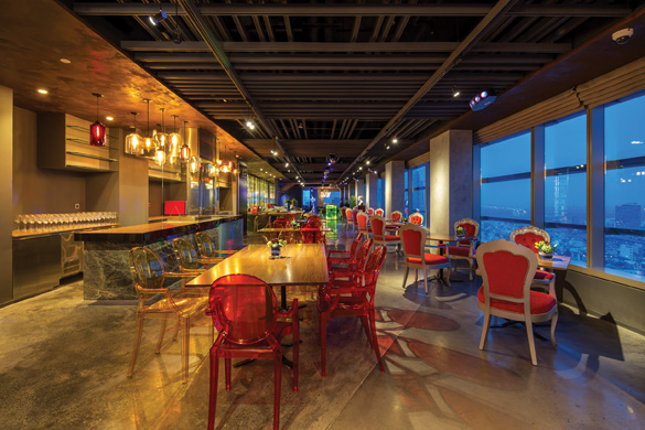 Đặc biệt hơn, Nhà hàng Cobalt trên tầng 30 được bao bọc bằng kính quanh không gian 180 độ được xem là nhà hàng cao nhất của các khách sạn tại TP. Hồ Chí Minh. Từ trong nhà hàng, theo bất cứ hướng nào, thực khách đều có thể ngắm nhìn toàn cảnh thành phố tuyệt đẹp trải dài đến tận đường chân trời. Sàn nhà sử dụng hoa văn hình hoa sen và nguyên liệu vải từ Sa Pa. Những ánh đèn biến đổi muôn màu nhằm tạo nên tính độc đáo và đa dạng nhưng không nằm ngoài ý tưởng hoán chuyển từ nghệ thuật đương đại đến truyền thống của Việt Nam.
