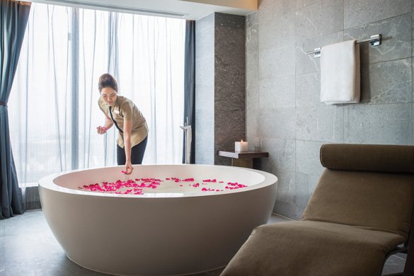 Pullman Signature Suite là loại phòng kết hợp Đông Tây, truyền thống và hiện đại, phù hợp cho tuần trăng mật đầy lãng mạn của các cặp uyên ương. Tại đây, từng góc hoa văn hay phòng tắm, giường nằm đều mang đến cho khách hàng cảm giác êm dịu như trong resort nghỉ dưỡng.