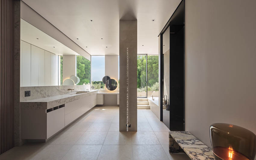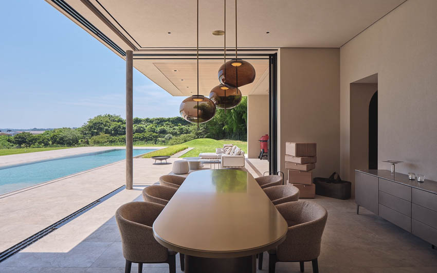 Phòng khách, phòng ăn, phòng tập thể thao và hầm rượu đều được nối bằng cùng một nguyên tắc: giữ sự tối giản tuyệt đối để cảm xúc có không gian vang lên. Trong “10M”, đồ đạc ít đi, nhưng sự hiện diện của thế giới tự nhiên thì nhiều lên — như thể bầu trời, mặt nước và gió đều là khách quen của ngôi nhà.