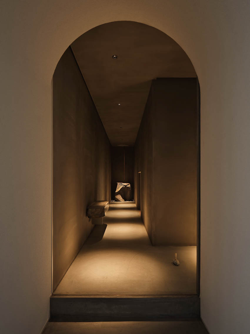 Kiến trúc sư dùng các vật liệu thô mộc: gỗ vỏ sần, vữa tự nhiên, cột cây để nguyên vỏ. Nhưng trong cái cũ kỹ đó, có một sự chính xác đến khắc nghiệt của hiện đại: tỷ lệ, trục, và ánh sáng đều được tính bằng đơn vị milimet.