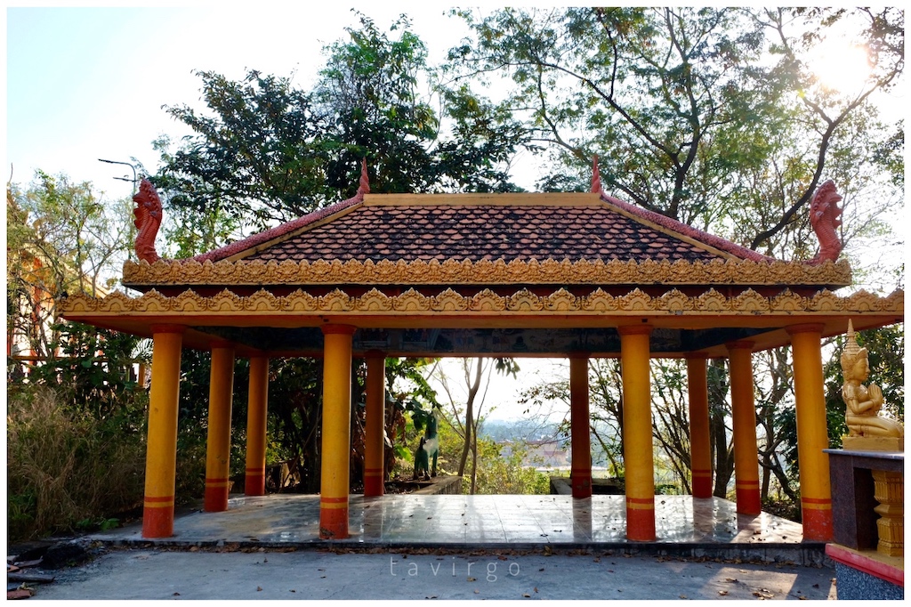 Mặc dù chùa được dựng trên triền núi chênh vênh với nhiều công trình lớn nhỏ ở các khu vực khác nhau nhưng được nối liền mạch bằng những con đường lát gạch đá nhỏ. Trên mỗi bậc thang nối đều có tượng rắn Naga được chạm khắc tinh xảo như là dấu hiệu dẫn đến công trình ở cao hơn. Tất cả gắn kết với nhau thành một không gian thống nhất, thoáng đãng; tôi ngỡ như mình đang lỡ bước vào chốn cung đình vậy.