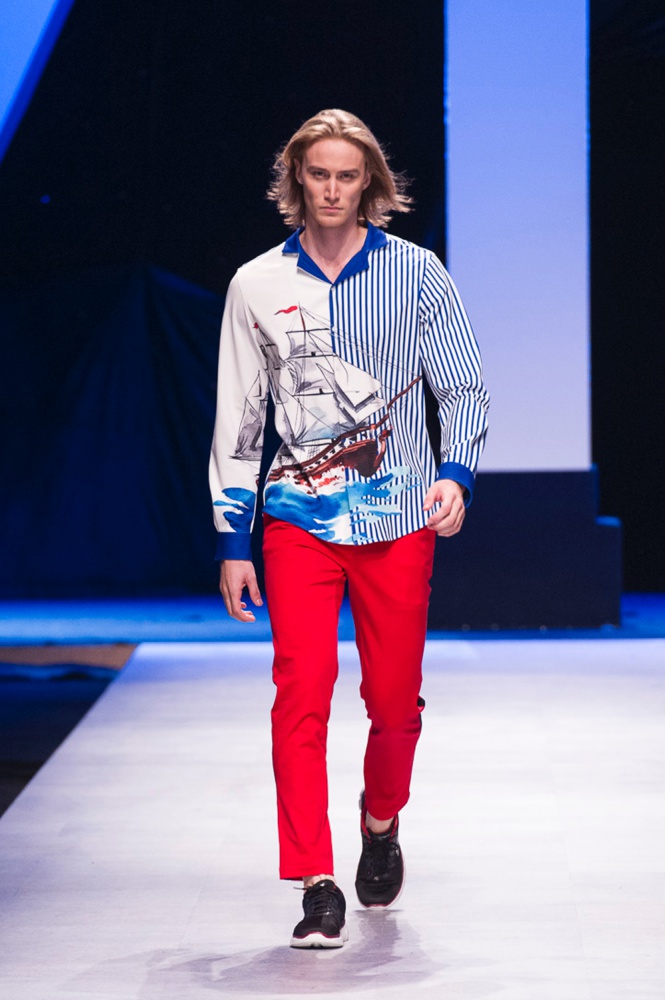 ‘The Leading Sail’ hướng đến tinh thần trẻ trung, năng động với những đường cắt may tỉ mỉ. Bộ sưu tập lấy cảm hứng từ hình ảnh con tàu căng buồm ra khơi, thẳng tiến đến những vùng đất mới. Những thiết kế mang tinh thần phóng khoáng, hiện đại và đa dạng về kiểu dáng. Như quần sort thời thượng, áo thun cá tính, sơ mi họa tiết trẻ trung, áo khoác bomber đang là xu hướng, vest cách điệu, Các thiết kế sử dụng họa tiết cánh buồm căng gió, những chiếc mỏ neo, kết hợp với họa tiết đang thịnh hành trong làng thời trang như kẻ sọc, ca rô.