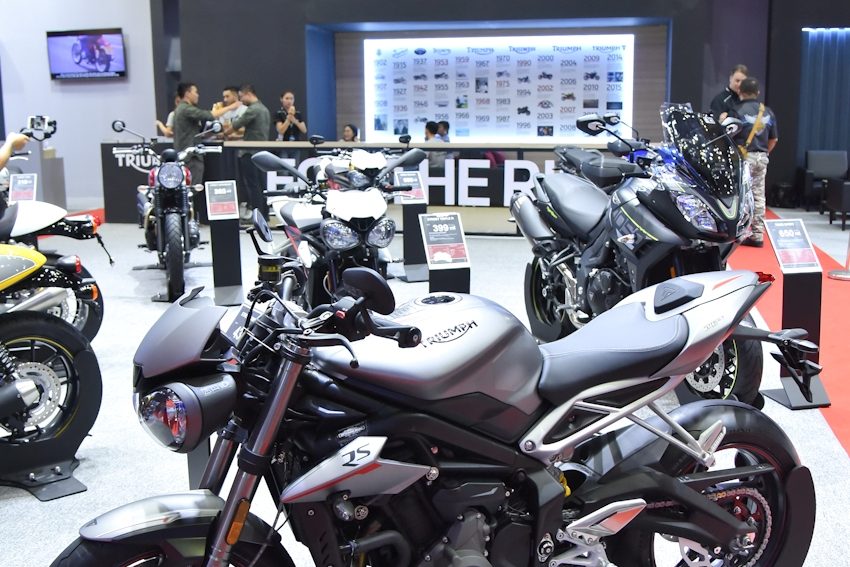 Lần đầu tiên tham dự Triển lãm Ôtô Quốc tế Việt Nam (VIMS 2017), hãng xe môtô đến từ Anh quốc – Triumph đã gây ấn tượng với khách tham quan chiêm ngưỡng 11 “chiến binh” bên cạnh dàn chân dài cá tính nóng bỏng, giá bán từ 310-769 triệu đồng.