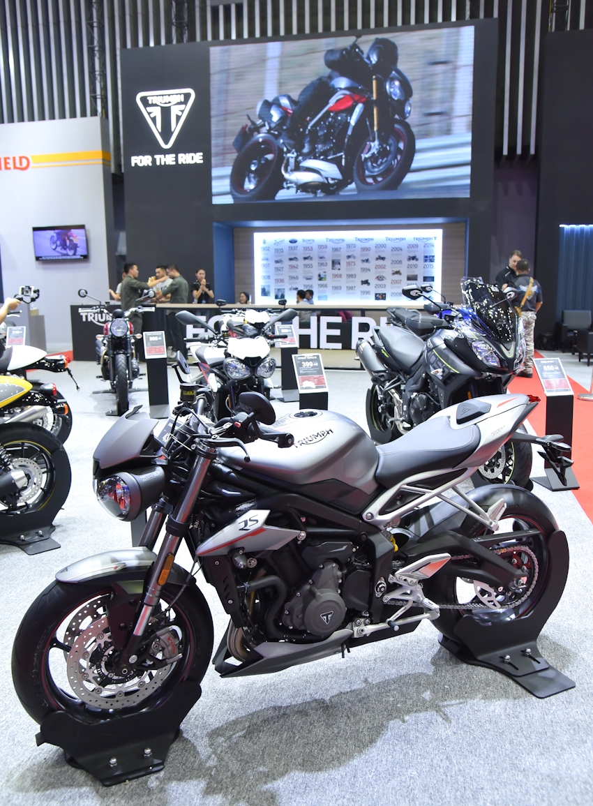 Triumph Việt Nam mang đến Triển lãm Ôtô Quốc tế Việt Nam cho các tín đồ mê xe gần như hầu hết các mẫu xe của Triumph Motorcycles trên thế giới. Từ mẫu xe Street Twin và các mẫu mã mới nhất của dòng Modern Classic Bonneville cho các tín đồ mê phong cách hoài cổ. Hay The Roadster và Supper sport cùng với các mẫu xe Speed Striple và Street Striple luôn thu hút các biker yêu thích kiểu dáng hầm hố và tốc độ cao. Đến những tâm hồn có sở thích khám phá các cung đường thú vị sẽ chọn các mẫu Tiger 800s, Tiger Explorers và the Tiger Sport.