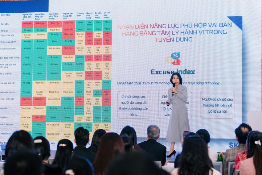 Tiếp nối, bà Phạm Thị Mỹ Lệ – Đồng sáng lập & Chủ tịch SKALE, đã mang đến bài chia sẻ “Tam giác vàng cho đội sales thời lượng tử: Hành vi – Văn hoá – AI”, nhấn mạnh vai trò của văn hoá như “năng lượng mềm” giúp doanh nghiệp nuôi dưỡng đội ngũ. “AI có thể tối ưu quy trình, nhưng cảm xúc, trực giác và sự thấu hiểu con người mới là yếu tố không thể thay thế”, bà Lệ nhấn mạnh.